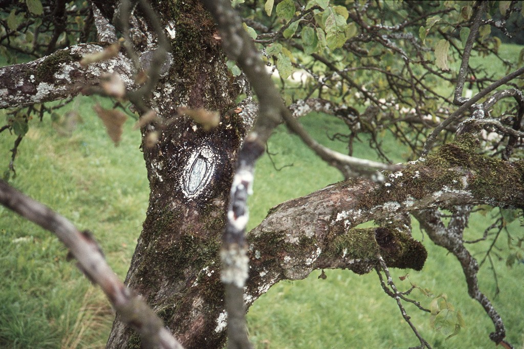 Now, of course, nothing could stop us and our search was soon successful. The little old apple tree that had already served Billy as a target for a ray-gun shot had inexplicably but quite noisily lost its top. Billy could only assume that Semjase had done this damage for some inexplicable reason, as he had been expecting her to make contact. It was not until a week after the incident that Semjase provided clarification at the 80th contact conversation on the 24th of August 1977.